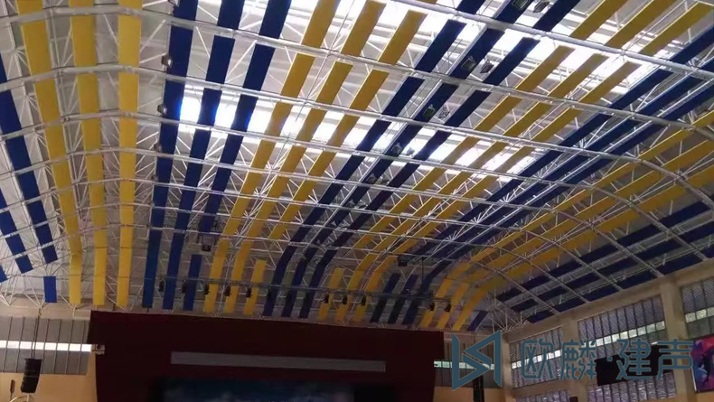 板狀的結構最簡單(dān),應用最普遍。空間吸聲體多用於室內體育館,其各式各樣的形狀、擺設方式,能增(zēng)強室內的裝飾(shì)效果,最重(chóng)要的是它的吸音性能,能防止大型廳堂內產生回聲缺陷,並有效降低混響時(shí)間。