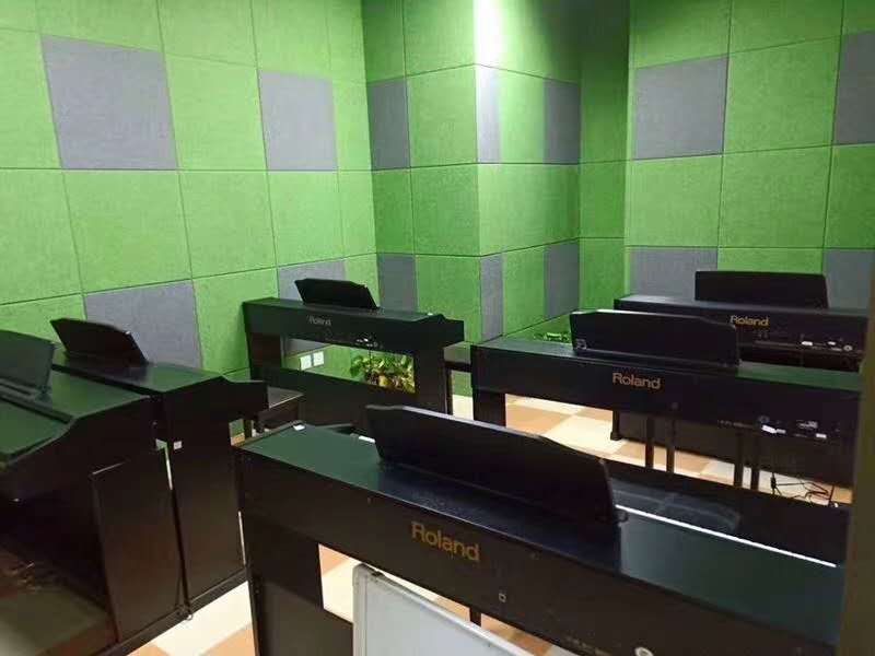 學校琴房:草綠色與灰色聚酯纖維吸音板完(wán)美(měi)搭配。